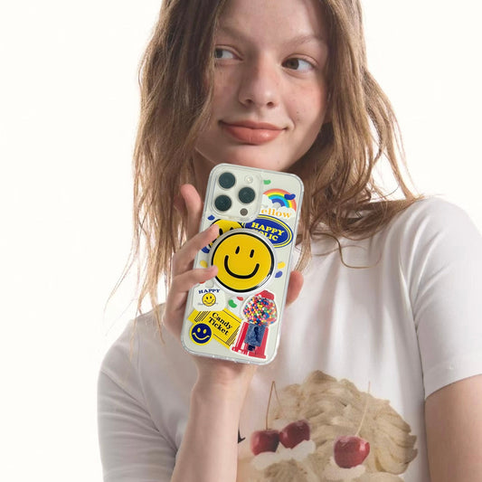 Happy Stickers Phone Case With Magnetic Holder